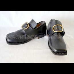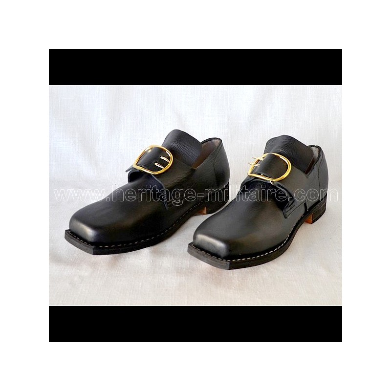 Shoes 30 years war XVIIth century BLACK IN STOCK: BLACK LEATHER WITHOUT NAILS: 39 40 41 42 43 44 45 46 47 BLACK LEATHER WITH NAILS: 39 40 41 42 43 44 45 46 47