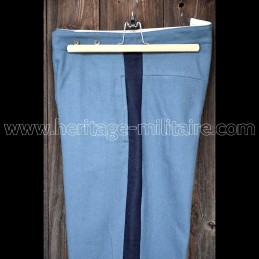 Pantalon laine bleu ciel foncé et bande large rouge EN STOCK TAILLES:   30  32       36   38   40       Attention, voir les correspondances de tailles en centimètres, dans la description. Si la taille que vous désirez se trouve hors stock, il est possible de la commander, le délai sera de 5/6 semaines.