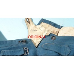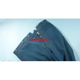 Pantalon laine bleu ciel foncé et liseré fin doré EN STOCK TAILLES: 30 38 Attention, voir les correspondances de tailles en centimètres, dans la description. Si la taille que vous désirez se trouve hors stock, il est possible de la commander, le délai sera de 3/4 semaines.