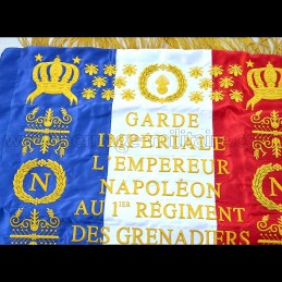 Drapeau grenadier de la garde brodé 1812 Napoléon 1er Drapeau en soie, entièrement brodé à la main. Deux faces HORS STOCK sur commande uniquement delai 4/6 semaines