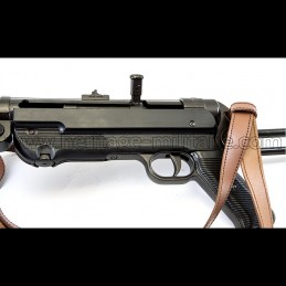 Le MP40 ( maschinenpistole 40 ) fut créée par Heinrich Vollmer en 1940 avec pour objectif d’équiper tous les soldats Allemand d’une arme d’assaut. Equipé d’un chargeur de 32 cartouches de 9mm, avec un portée effective de 100/150 mètres, c’était une arme de qualité de fabrication économique. Son recul est relativement faible même avec un tir en rafale et grâce à sa faible cadence de feu, cela lui permettait d’être précise à courte distance. Peu efficace en rase campagne du fait de sa courté portée, c’est ce qui a poussé les concepteurs a créé le STG-44, prédécesseur des fusils d’assauts modernes.