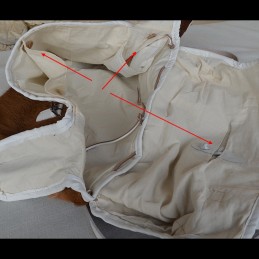 Également présente, deux séparations refermable à l'aide de bouton en bois, à l’intérieur du sac.